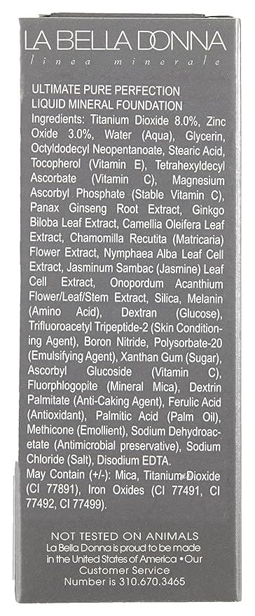 - ALL NATURAL: La Bella Donna Liquid Mineral Foundation is formulated with only the safest and most gentle pure natural ingredients, making it suitable for all skin types. It contains skin-soothing botanicals, minerals, and more.