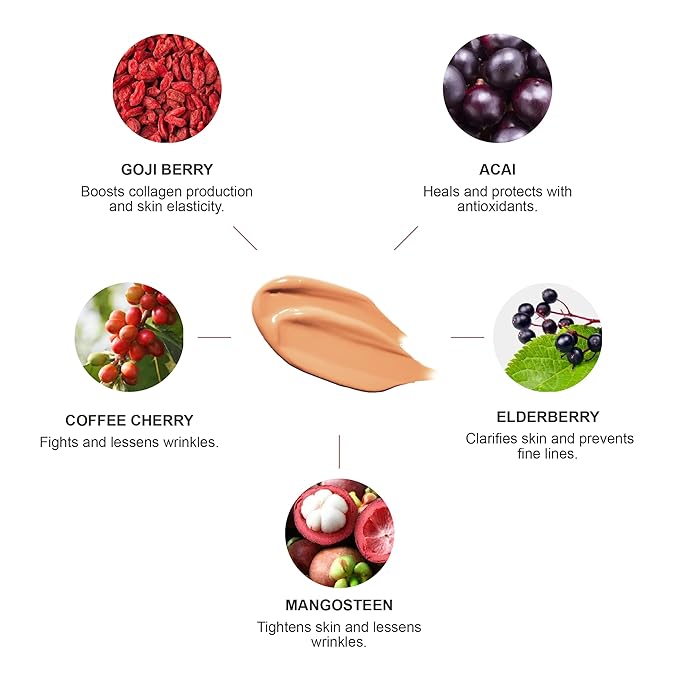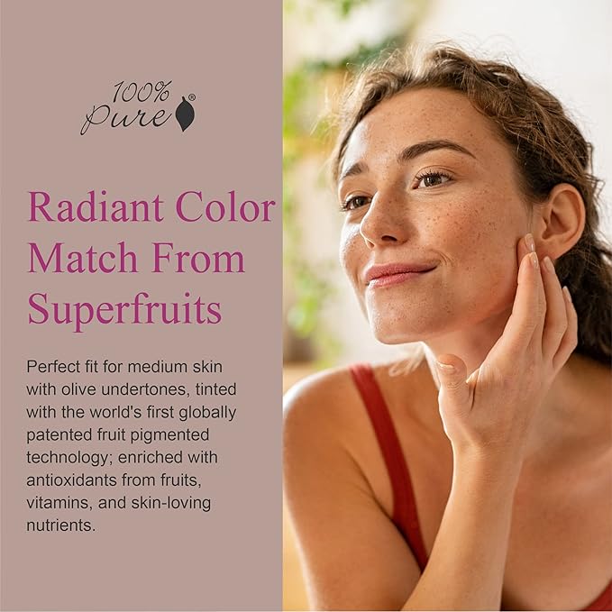 - RADIANT COLOR MATCH FROM SUPERFRUITS - Perfect fit for medium skin with olive undertones, tinted with the world's first globally patented fruit pigmented technology; enriched with antioxidants from fruits, vitamins, and skin-loving nutrients.