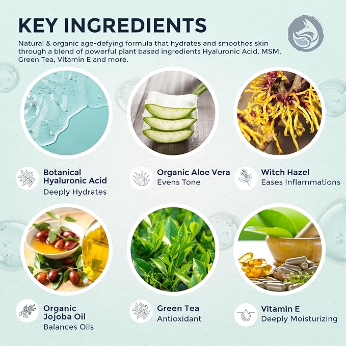- PREMIUM GRADE FACE SERUM - Hyaluronic Acid hydrates skin deeply hydrates, Aloe Vera evens tone, Witch Hazel reduces redness, Jojoba Oil Balances Oil, Vitamin E deeply moisturizes and Green Tea soothes skin. Together providing the perfect blend to keep your skin healthy