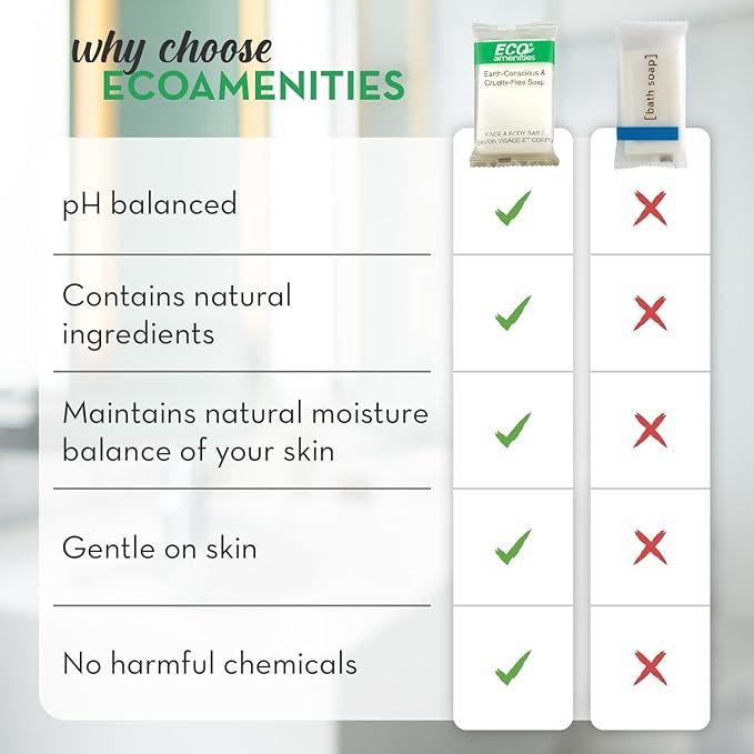- FLEXIBLE USE - Eco Amenities bulk hotel soap set is perfect for all your needs: hotels and motels, airbnbs, VRBOs, vacation rentals, bed & breakfasts, resorts, airlines, offices, gyms, guest rooms, & other hospitality locations.
