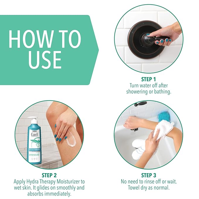 - SKIN HYDRATION WITH NO RESIDUE - Curel fast absorbing lotion allows for wet, in-shower application and immediate absorption so you can towel off and go