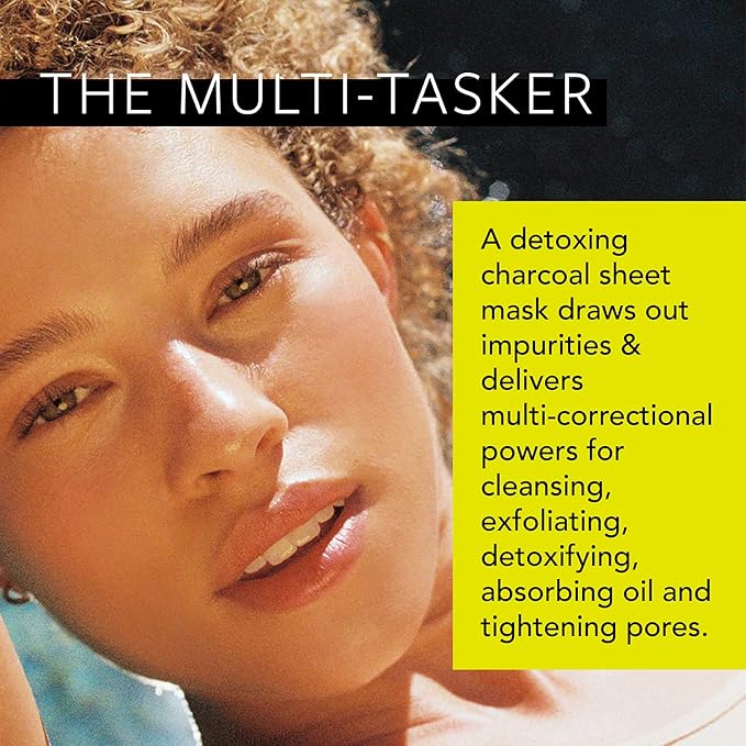 LAPCOS Charcoal Sheet Mask, Daily Face Mask with Salicylic Acid and Tea Tree Oil to Detoxify and Tighten Skin, Korean Beauty Favorite, 5-Pack