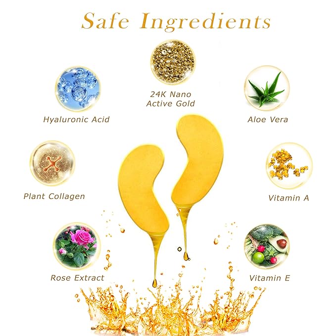 - ⏳ ANTI-AGING results of gel eye patches are achieved by hyaluronic acid and 24k gold extract that help to retain moisture in the epidermis, so it will not be dehydrated. Choose our gold eye patches eye mask skincare for puffy eyes for best results.