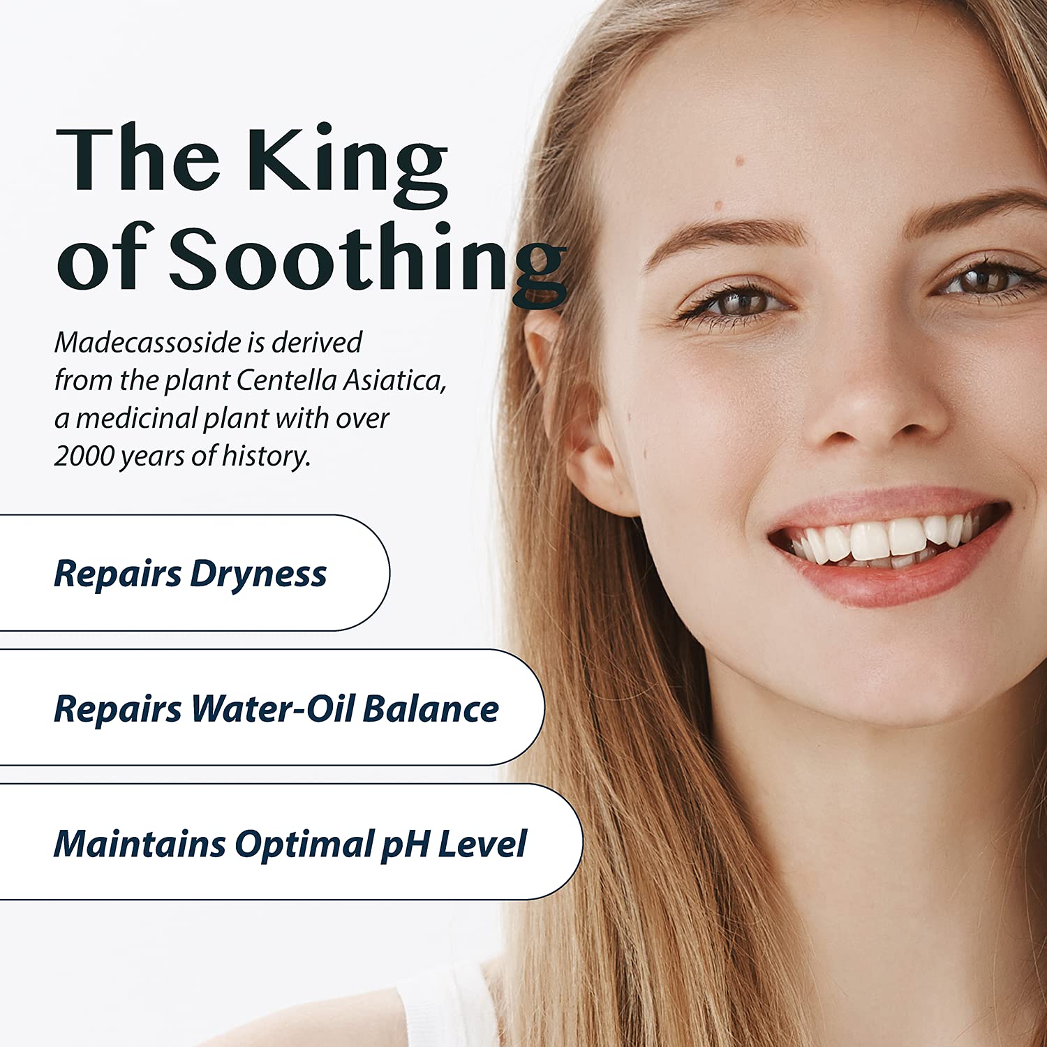 - MADECASSOSIDE - Care for your skin with nature's help - This skincare formula features Madecassoside, a natural compound found in Centella Asiatica, which helps soothe dry skin