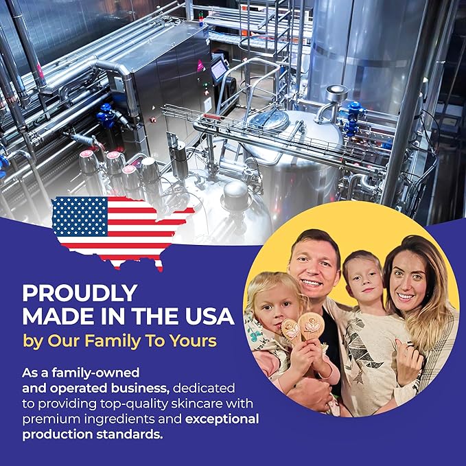 - Proudly Made in the USA by a Family-owned and Operated business, dedicated to providing top-quality skincare with premium ingredients and exceptional production standards.