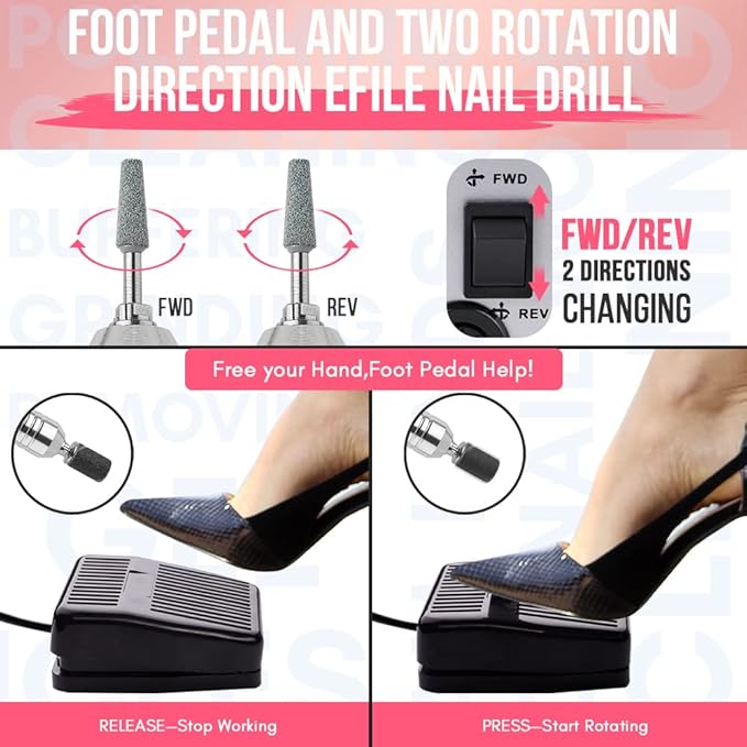- Easy for Beginners & Home Use Electric Nail Drill: We provide a tutorial video and instruction manual to assist you for use. The twist lock chuck system helps you replace grinding head easily. Suitable for both right &left- handed operators. Get a nail prep and remove nail gel quickly. Change your nail shape nail art at any time. Low cost but with salon-quality. Ideal for professional nail salon, studio and home use