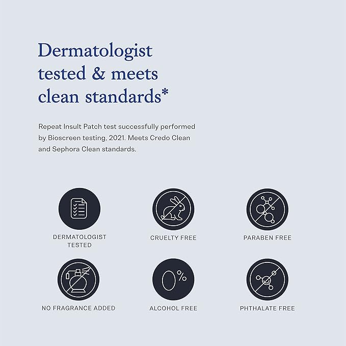 - SAFE & FREE OF: Cruelty-free, paraben-free, hypoallergenic, non-irritating, phthalate-free, alcohol-free, and no fragrance added. Ingredients meet Credo Clean and Sephora Clean standards.