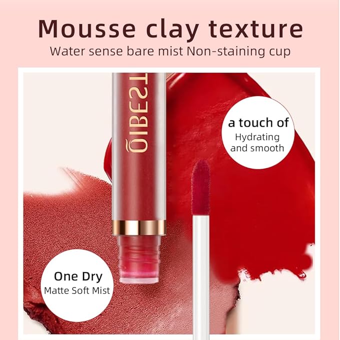 - ★Not stick cup, do not fade, matte matte dry only lightly purse one's lips, otherwise it will stick, painted lip gloss finish is dry because is fog surface velvet effect