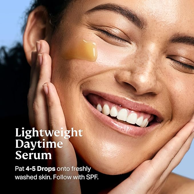 - LIGHTWEIGHT DAYTIME SERUM, RAPIDLY ABSORBS INTO SKIN: Pat 4-5 drops into freshly washed skin in upward motions until fully absorbed. Follow with SPF and your makeup routine.