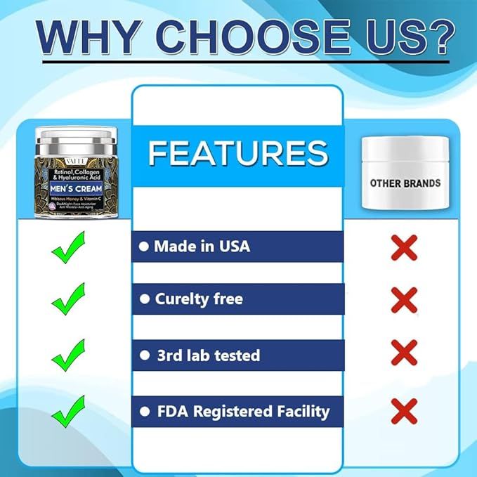 VAITE Mens Face Skin Moisturizer with Collagen, Retinol Ant-Aging, Anti-Wrinkle Under the Eyes Men's cream care for Face with Hibiscus & Honey, Hyaluronic acid, Vitamin C Made in USA