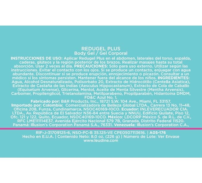 - Firming and Tightening Effect: With essential mint oil, Redugel Plus promotes lymphatic drainage and helps relieve the skin from toxin build-up, contributing to its firmness and having a visibly tightening effect!