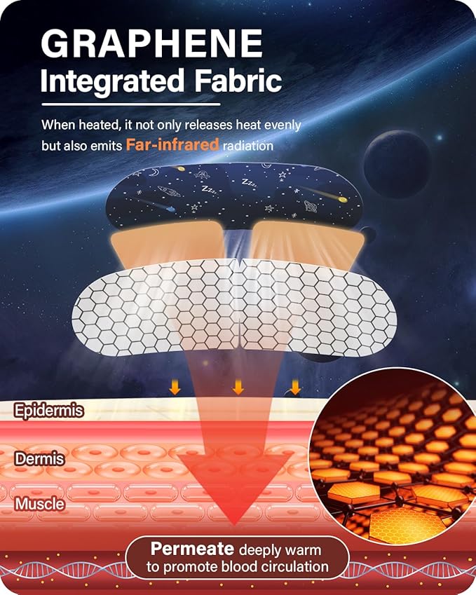 - 😇【Upgraded Graphene Steam Eye Mask】Our heated eye mask is added with a graphene contact layer, which releases far-infrared microwaves during the hot compress, promotes blood circulation around the eyes. Steam Warm Eye Masks can relieve your eye fatigue,moisturize your eyes, improve your sleep quality, reduce dry puffy eyes and dark circles.