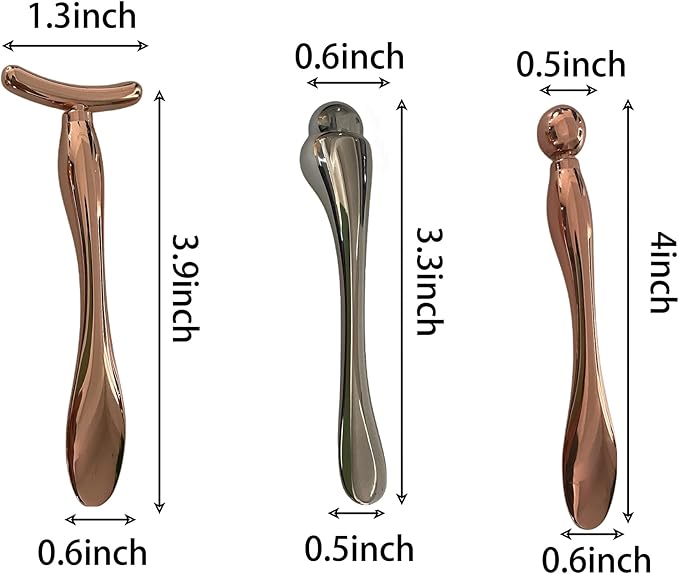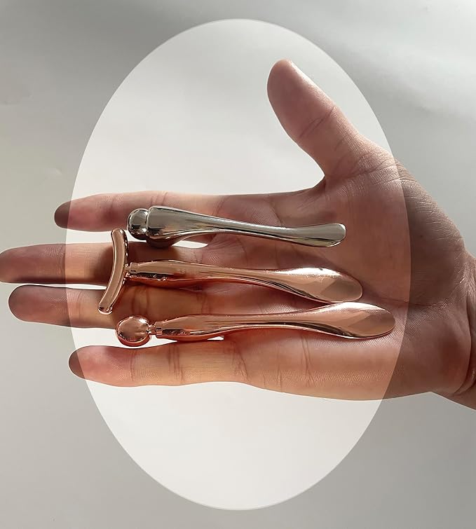 - 【ABSORPTION】: The face massage tools are mini design for the face, one end of the spatula can be used for night and day creams, and the 3D roller head, Y head and round head can be used for massage to reduce eye puffiness and tighten the skin