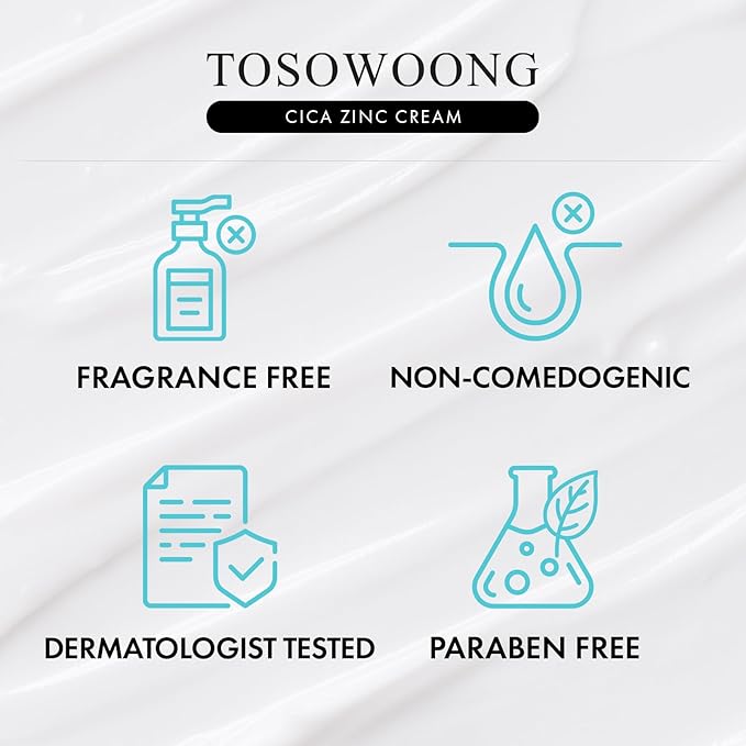 SOS Repair CICA Clinic Zinc Cream, 100,000ppm Zinc Oxide, Heal, Soothe Acne, Redness, Rosacea Treatment, Skin Barrier Repair, Moisture, Non-Comedogenic, Korean Skin care, 50g, 1.76 oz.