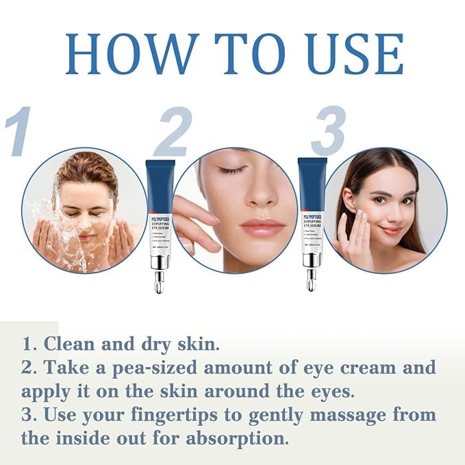 - Peptide Depuffing Eye Serum: Caffeine eye crea improves rough skin and pores, moisturize and soothe dry skin, and make eyes glow , and provides deep hydration for smooth, revitalized skin
