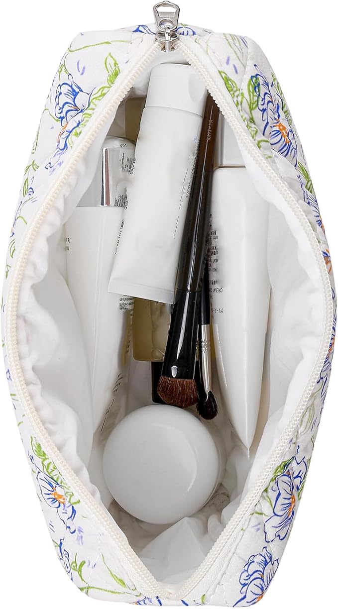 Makeup Bag Travel Cosmetic Bag for Women Girls, Zipper Make Up Pouch, Floral Flowers Toiletry Organizer Makeup, Portable Storage Bag, Cosmetic Travel Cloth Bag (L/Large Blue Flowers)