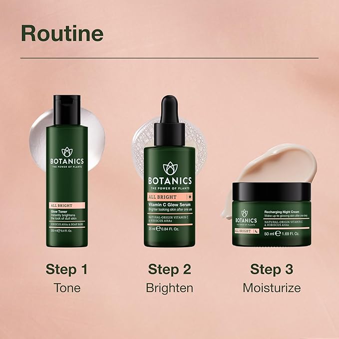 Botanics Glow Toner for Face - Enriched with Hibiscus AHA Exfoliant & Soap Bark - Non-Drying - Vegan and Cruelty-Free Face Toner for Women & Men (8.4 Fl Oz)