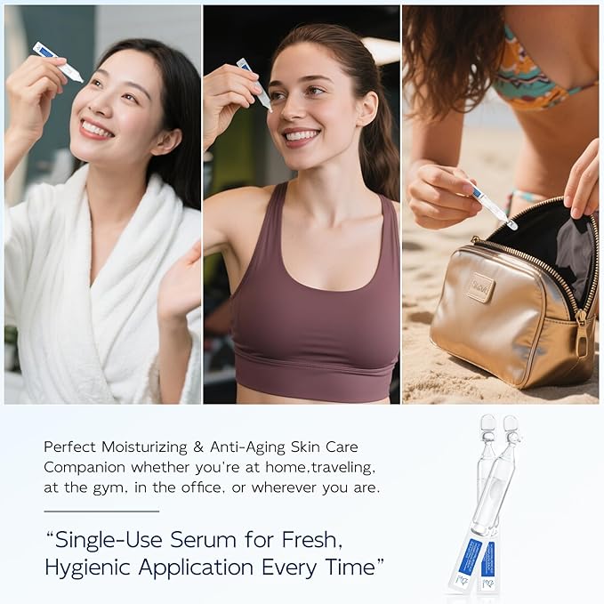 - Air-Tight Single-Use Tubes – Freshness Guaranteed:Each 1.5ml sterile tube (vs. traditional pumps that oxidize!) protects actives like peptides and HA. Throw in gym bags or carry-on luggage – no leaks, no contamination.