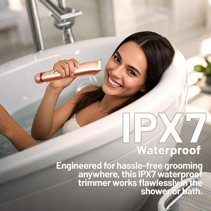 - 2 in-1 Upgraded Transparent Bin:This bikini trimmer features an IPX7 waterproof body and anti-slip ergonomic handle, allowing safe use in the shower or bath. The 2025 upgraded transparent bin lets you visually track hair accumulation and clean broken hairs instantly, preventing messy residue buildup. Perfect for busy women who value hygiene and hate a post-shave cleanup.