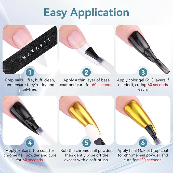 - Easy to Use – UV/LED Lamp Required: Apply and cure in minutes! Works with all brands of gel polish and chrome powder. Great for beginners and pros alike