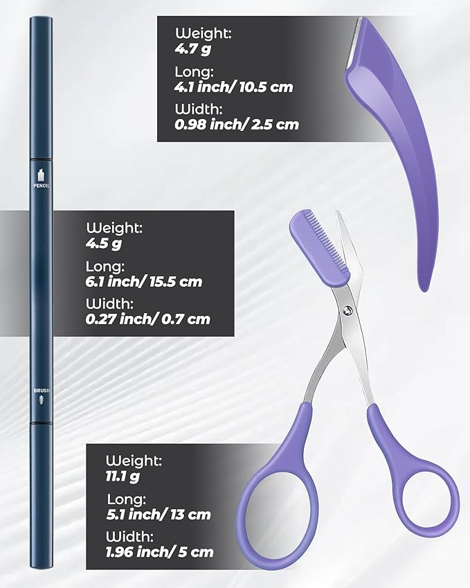 - ALL-IN-1 SALON-GRADE EYEBROW KIT: Upgrade your brow routine with our all-in-one salon-grade kit. It includes 12 no-sharpen microblading pencils, a stainless steel curved razor with 0.1mm safety guard, and an eyebrow trimmer set. Trim, define, and fill easily, achieving natural, salon-quality brows. Ideal for beginners and pros alike